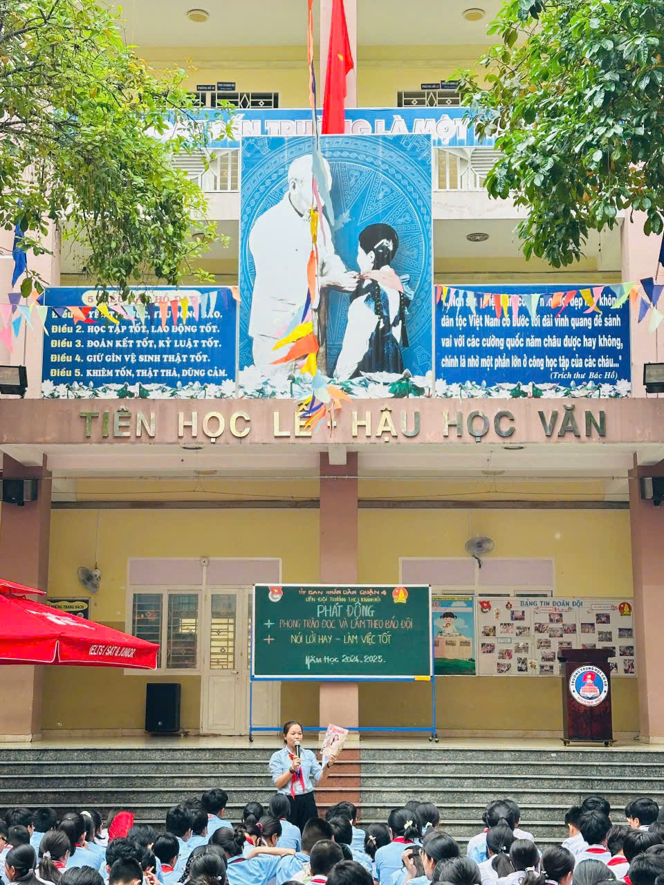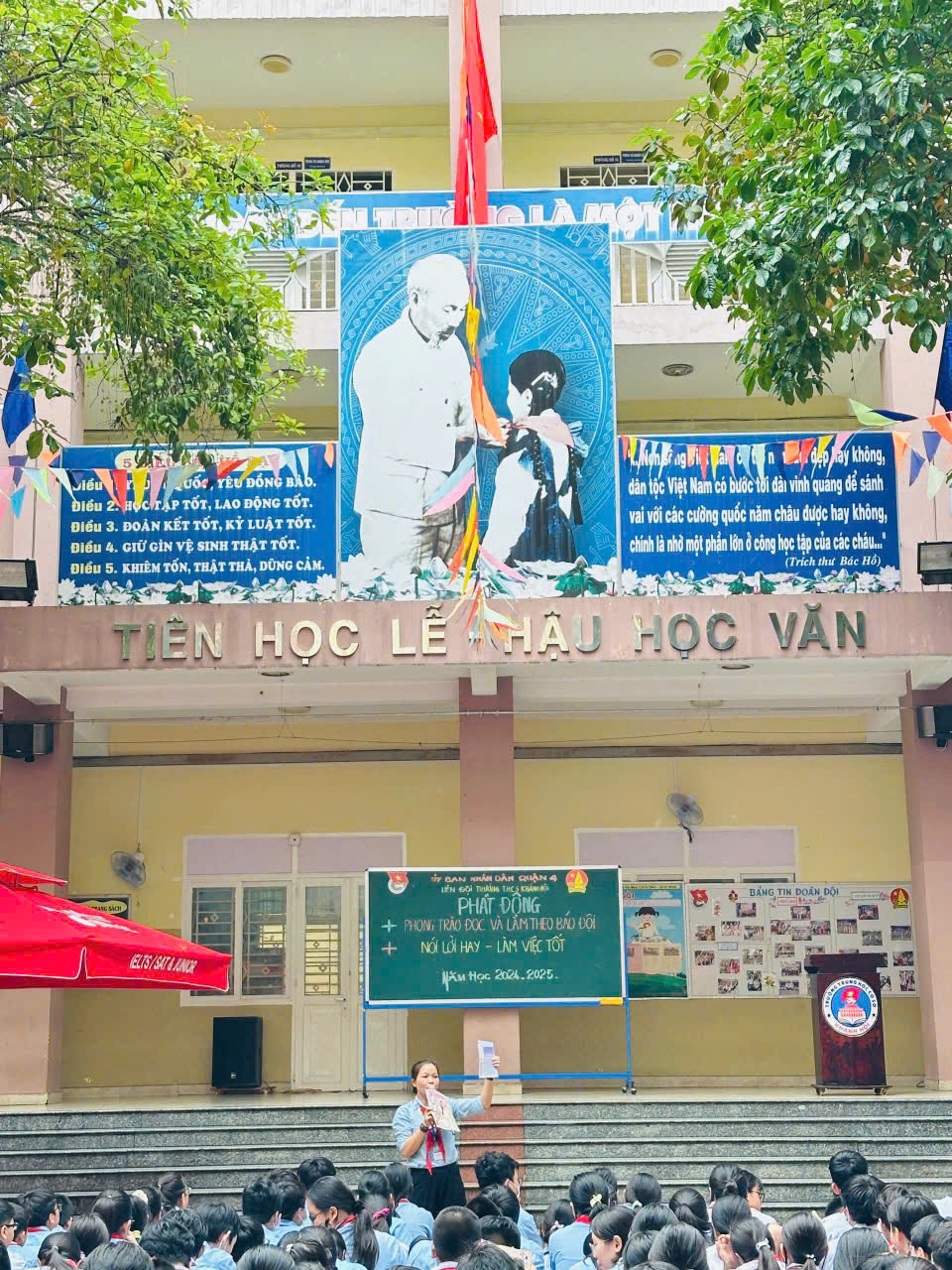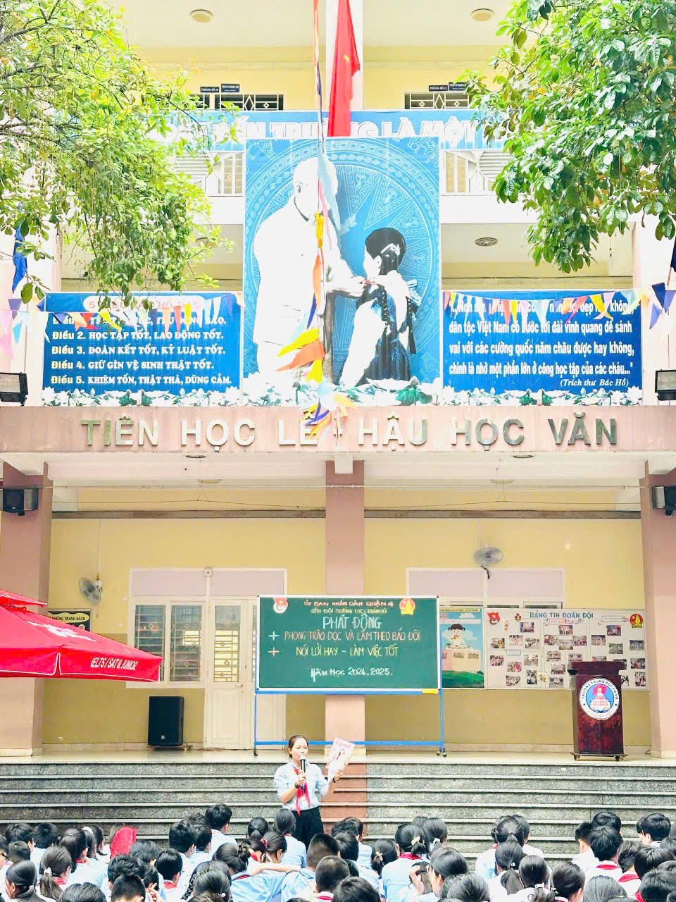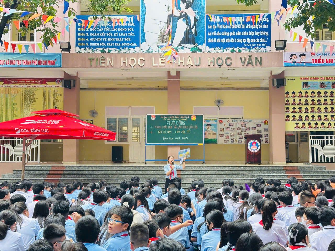 Sáng thứ Hai ngày 07/10/2024, thực hiện kế hoạch năm học 2024-2025, trong buổi Sinh hoạt chào đầu tuần, Liên đội trường THCS Khánh Hội đã Phát động phong trào trong học sinh toàn trường với các nội dung: