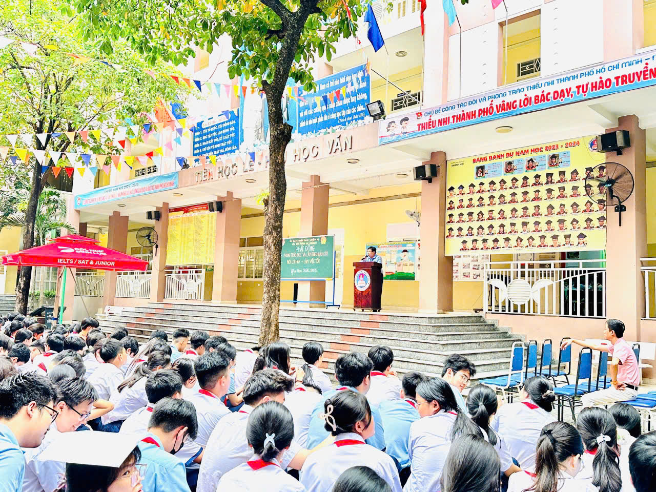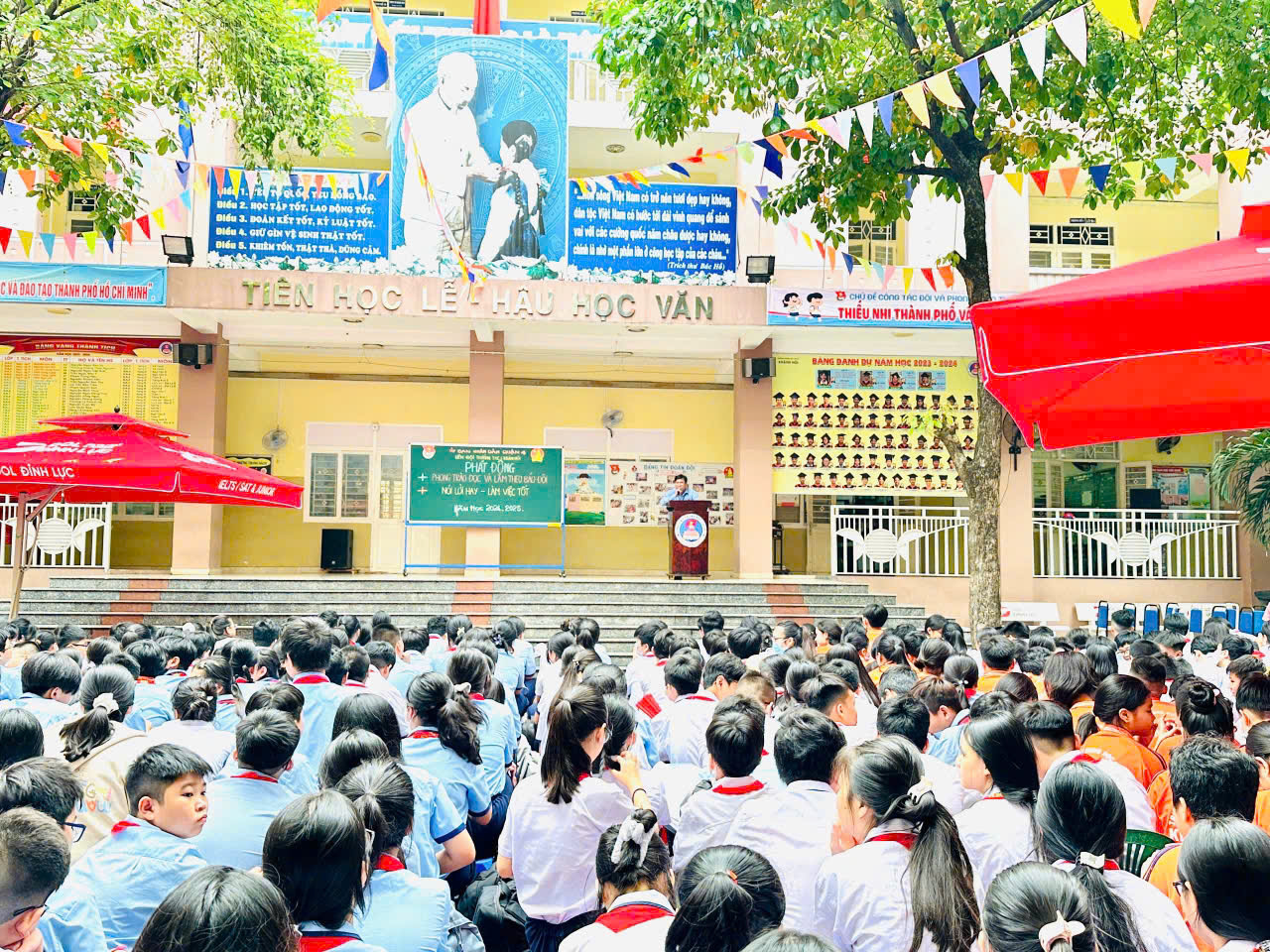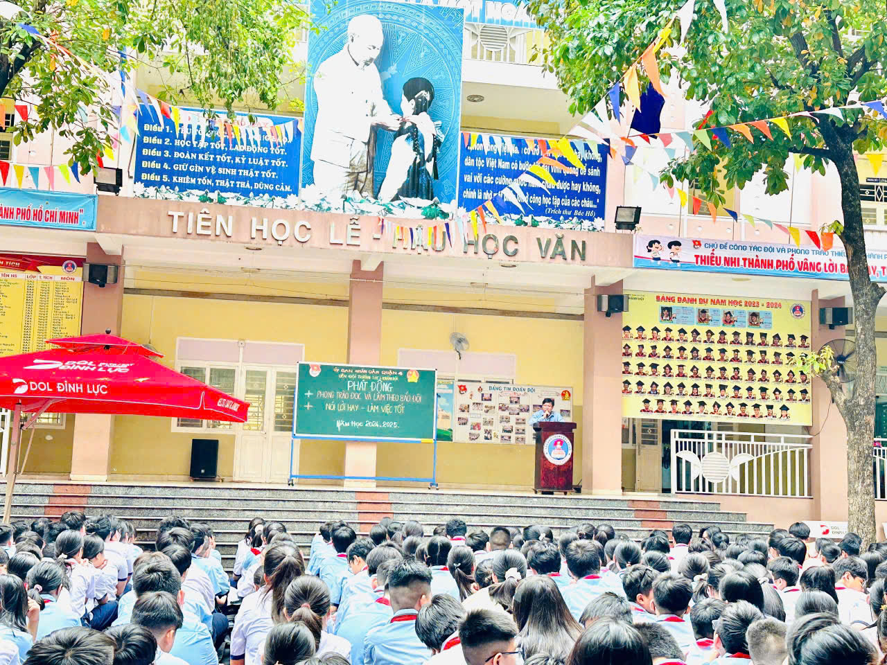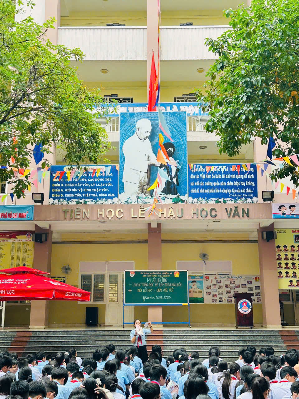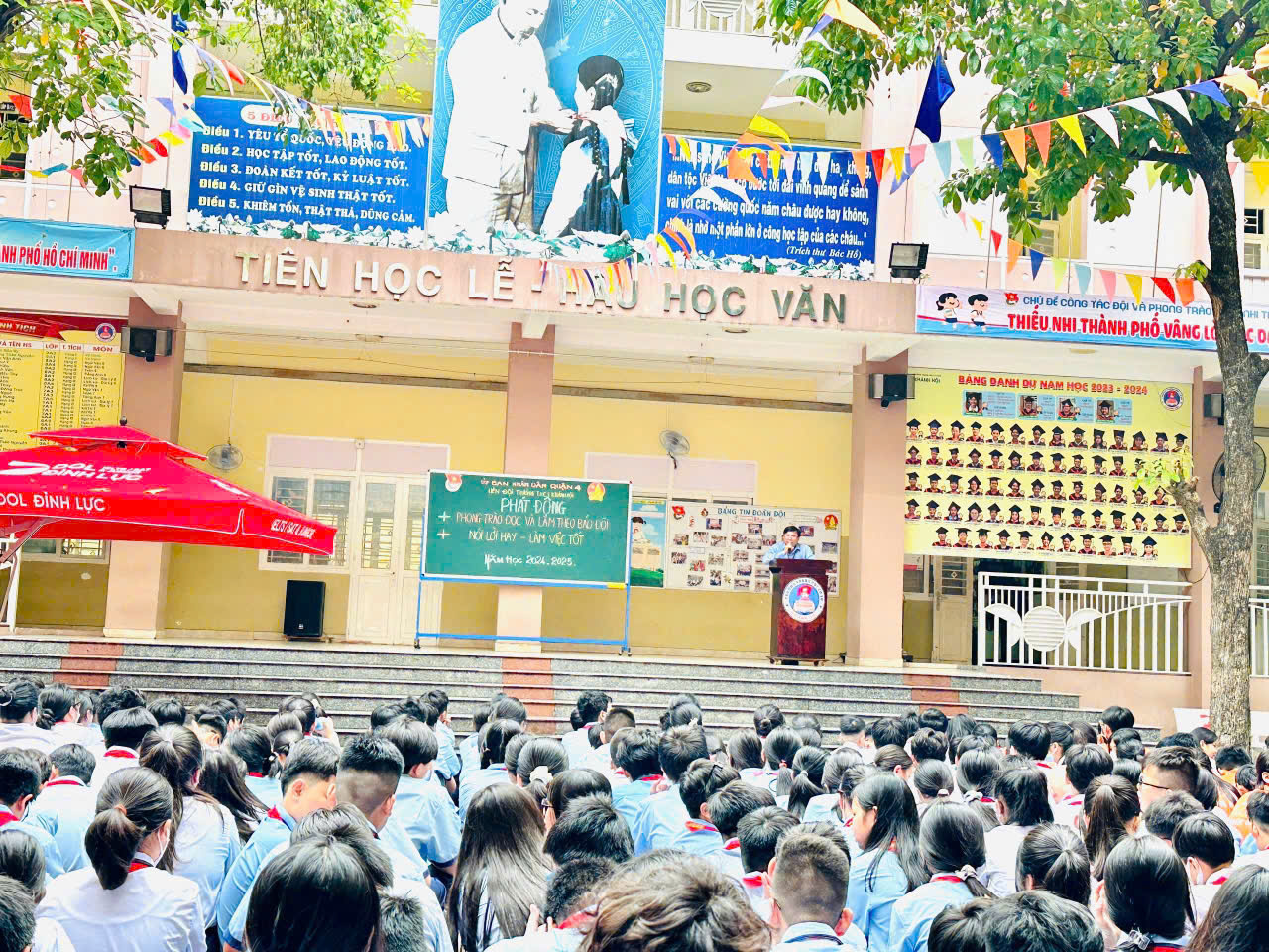 Sáng thứ Hai ngày 07/10/2024, thực hiện kế hoạch năm học 2024-2025, trong buổi Sinh hoạt chào đầu tuần, Liên đội trường THCS Khánh Hội đã Phát động phong trào trong học sinh toàn trường với các nội dung: